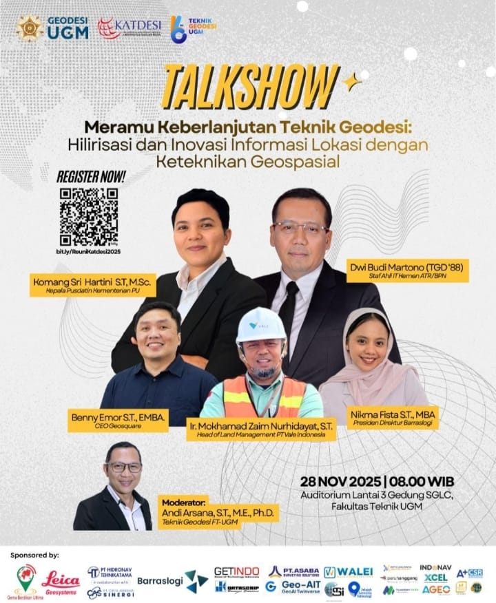 Katdesi.org adalah portal alumni Teknik Geodesi UGM yang dikelola oleh Pengurus Keluarga Alumni Teknik Geodesi UGM (KATDESI UGM) dan berkolaborasi secara aktif dengan Departemen Teknik Geodesi UGM.